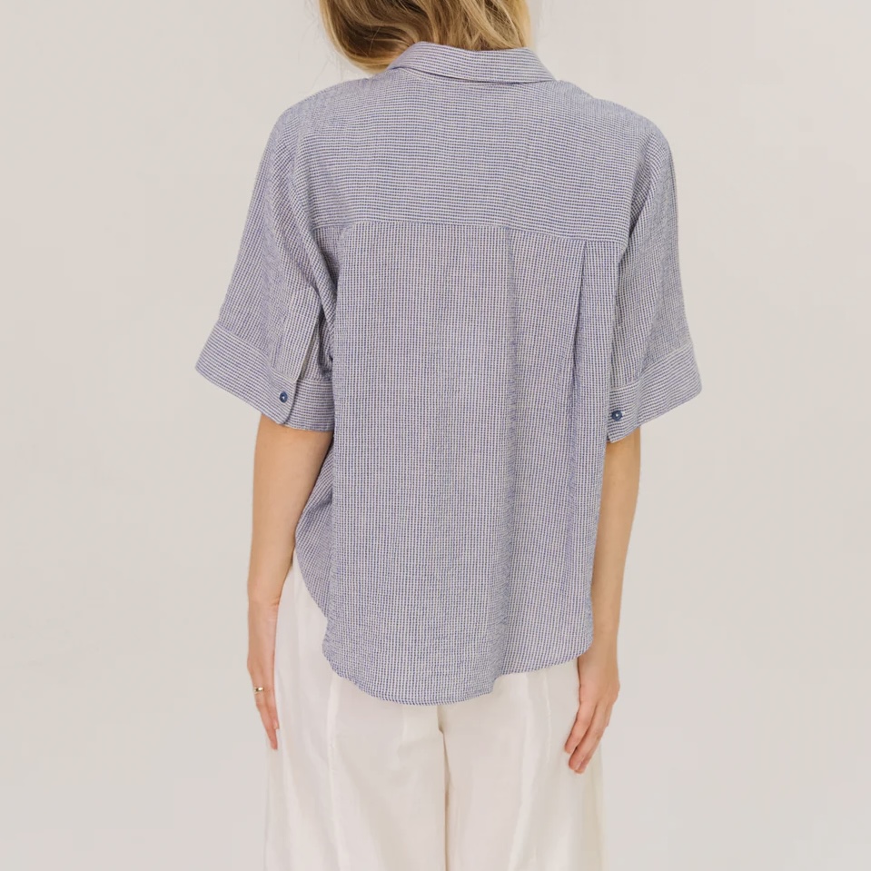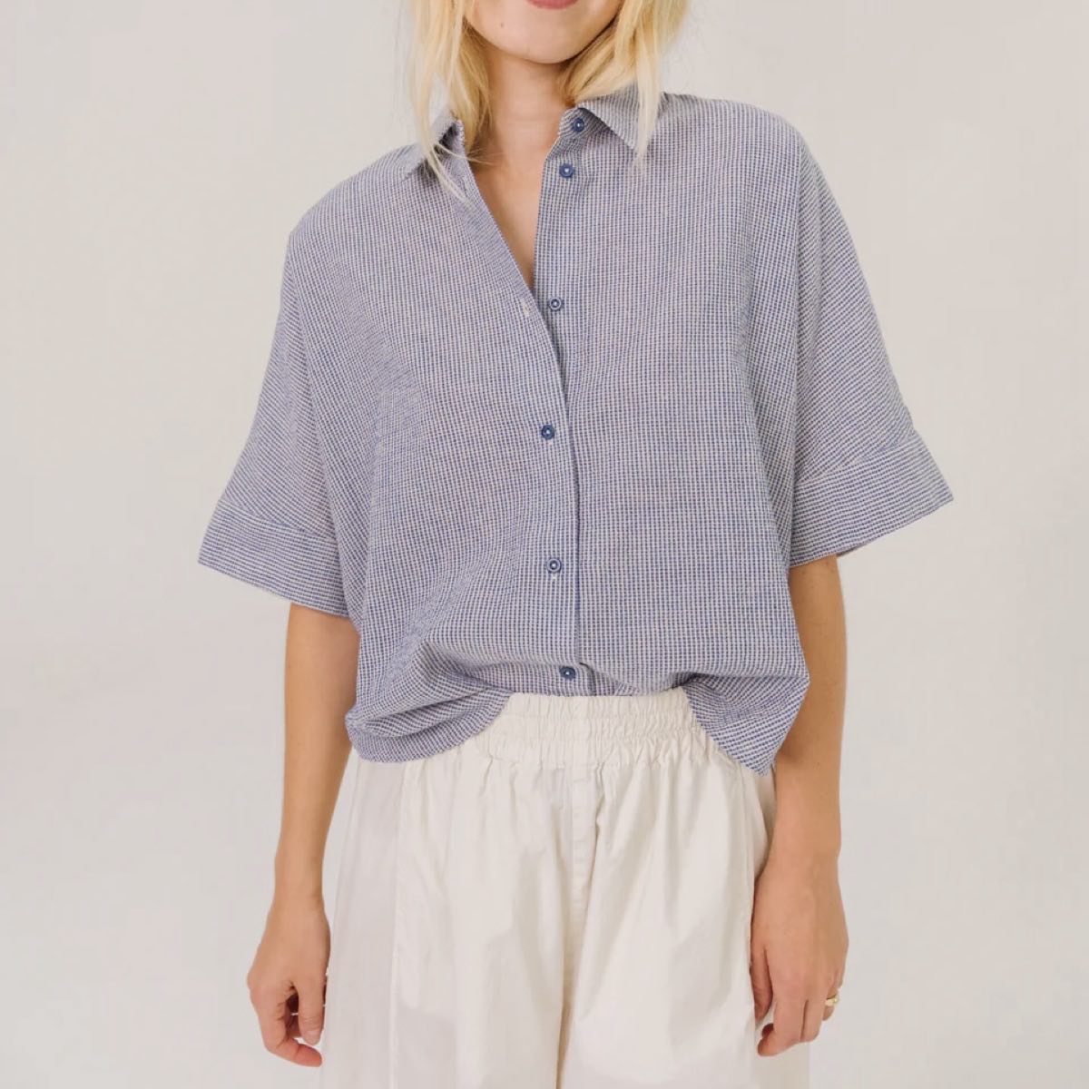 • Chemise manches kimono courtes, bas arrondi.